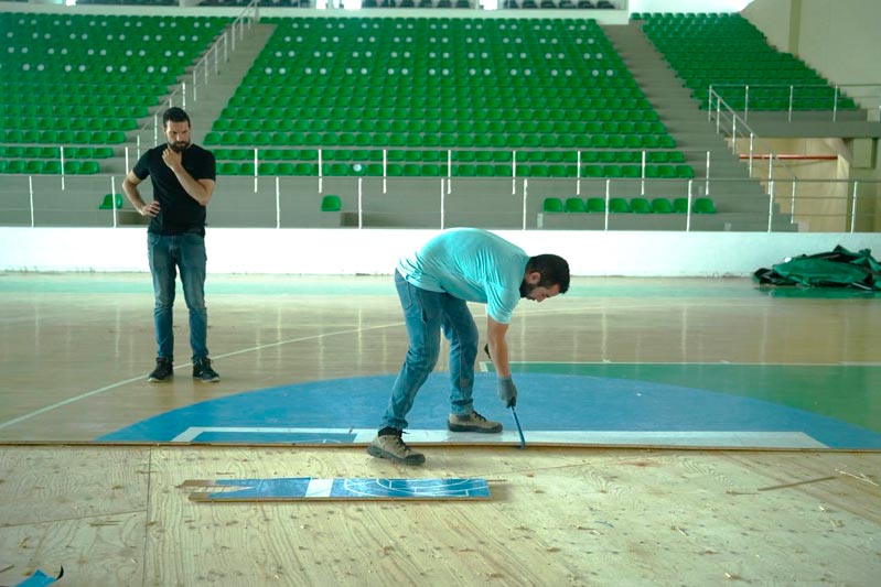 Iniciamos con el cambio total del maderamen de la superficie de competencia y realizamos el mantenimiento de los aires acondicionados y la cubierta del escenario deportivo.